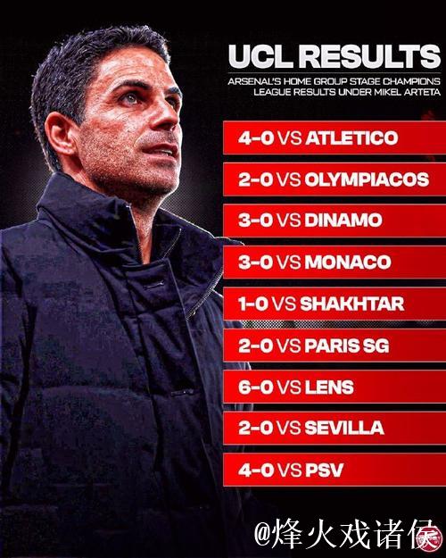 阿尔特塔执教下阿森纳主场欧冠小组赛与联赛10战全胜